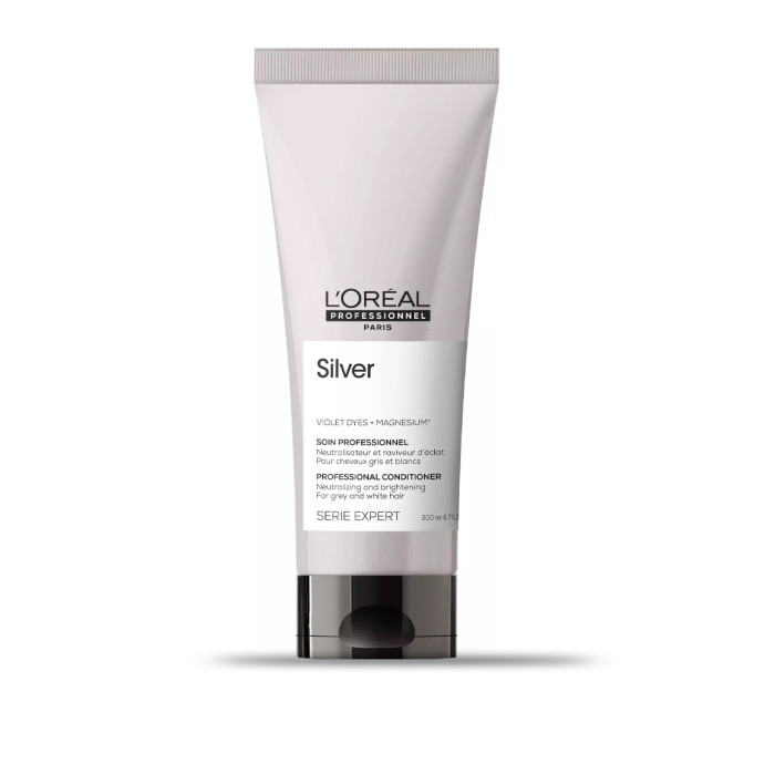 Le revitalisant de la gamme Silver de Série Expert contient des micro-pigments violets qui agissent comme neutralisateur de reflets jaunes et protège également les tons clairs.