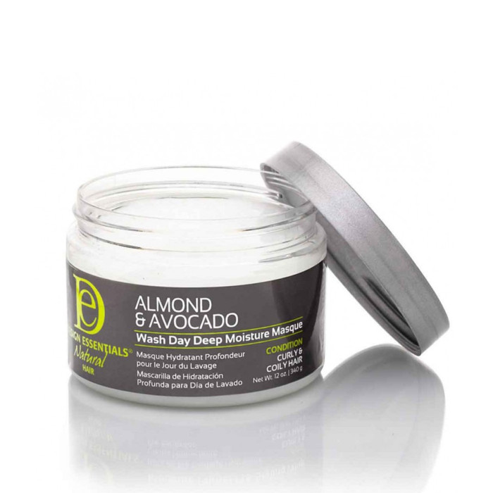 Enrichi en huiles d’Amande douce, de Tournesol, et d’Avocat, Design Essentials Almond Avocado Wash Day Deep Moisture Masque agit en profondeur dans les cheveux, pour les hydrater intensément, nourrir, renforcer la tige capillaire et pour apporter douceur, maniabilité à la chevelure.
